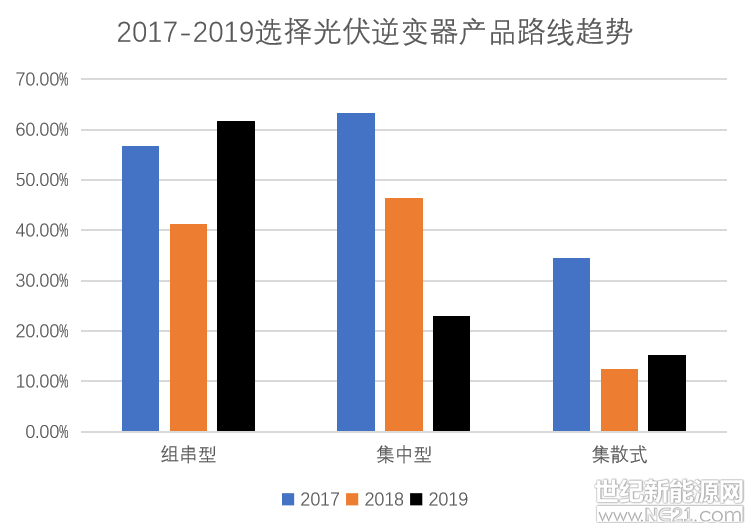 經過激烈的價格競爭與產品技術快速迭代,組串式逆變器(大功率)被持續看好。2019年超過61.66%產業認識認同此觀點,上一年為41.21%,增幅明顯。