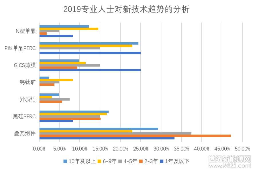 專業人士除看好疊瓦技術,同時對P型單晶PERC及GIGS保持樂觀預期。對鈣鈦礦、異質結等技術并不樂觀。